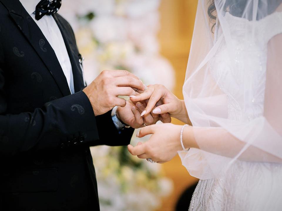 Η ώρα της τελετής. Ο Ιερός Ναός του Ευαγγελισμού της Θεοτόκου βρίσκεται εντώς του κτήματος.